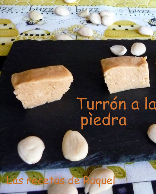 Vuelvo al ataque con otro turrón. Esta vez le toca  el turno al famoso turrón a la piedra, que para l@s que tengais thermomix es muy sencillo de hacer.. La verdad es que viendo el fabuloso resultado y lo poquísimo que tarda en hacerse con la thermomix, me da rabia no haberlo descubierto antes.